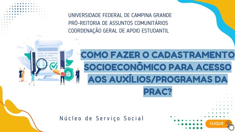 | PRAC-UFCG - Pró-Reitoria de Assuntos Comunitários | Órgão responsável por gerir a política de assistência estudantil e qualidade de vida da comunidade universitária no âmbito de toda a UFCG. |